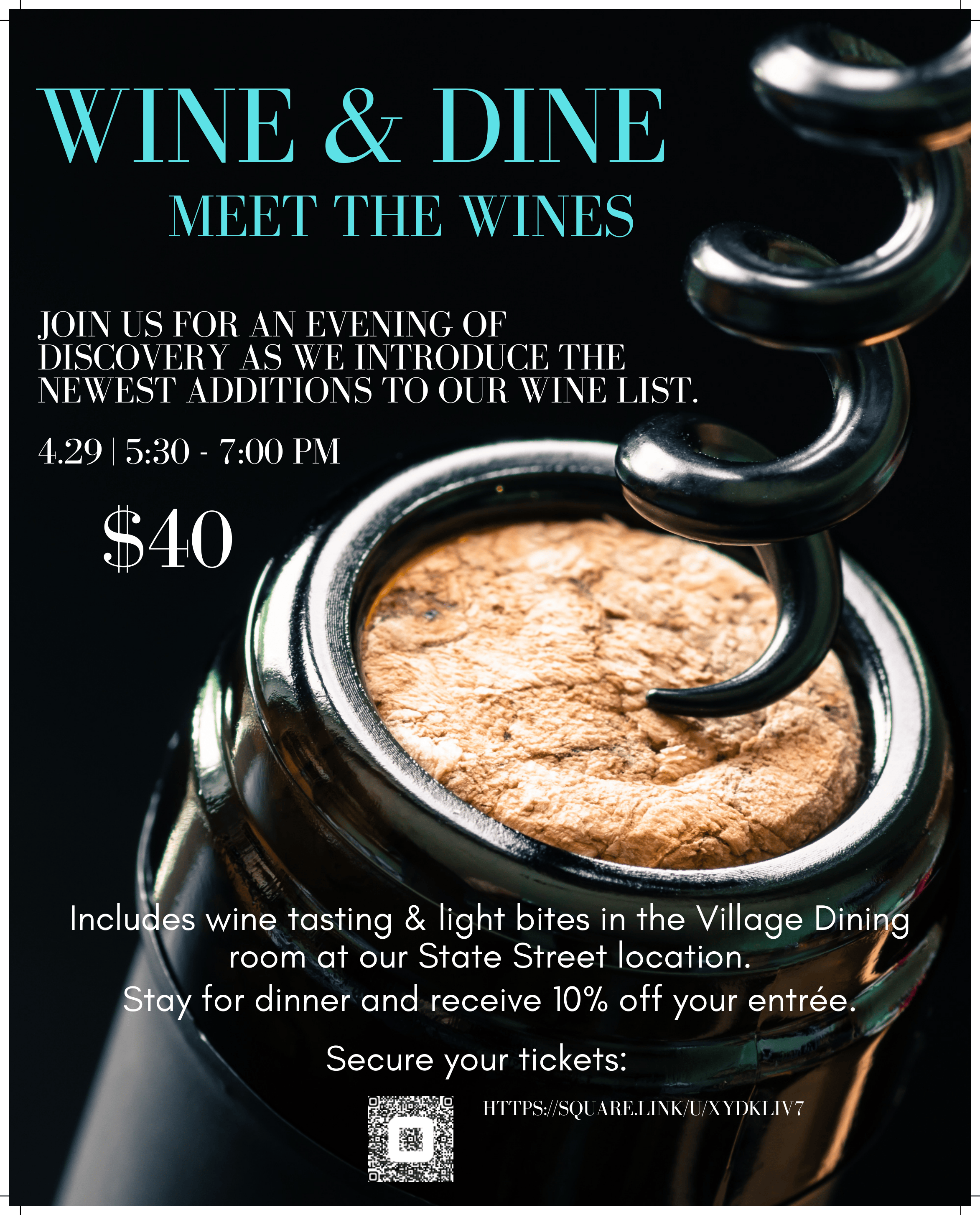 Join us for an evening of discovery as we introduce the newest additions to our wine list.